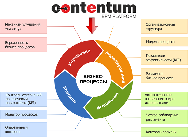 CONTENTUM - це інструмент, який дозволяє моделювати, автоматично виконувати і контролювати будь-які бізнес-процеси компанії, реалізуючи концепцію управління процесами. Таким чином, ПЗ Сontentum відноситься до класу BPMS (Вusiness Project Management System), або BPM-систем, і надає всі необхідні функції для управління бізнес-процесами: проектування, автоматичний запуск і контроль завдань, аналіз метрик і показників, моніторинг і оптимізація в режимі реального часу (внесення змін без зупинки процесу).